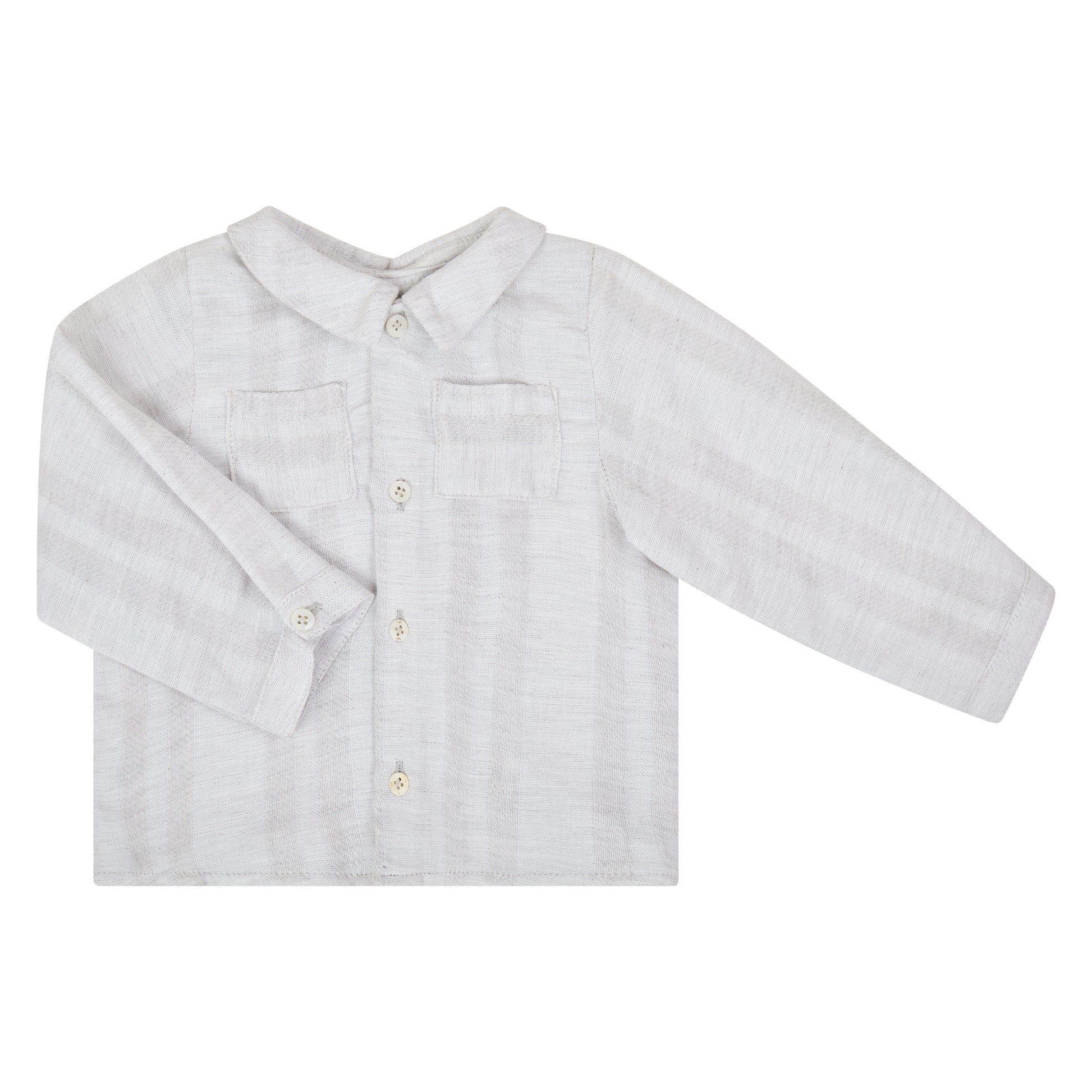 Camisa bebe niño gris perla con bolsillos delanteros y cuello peter pan