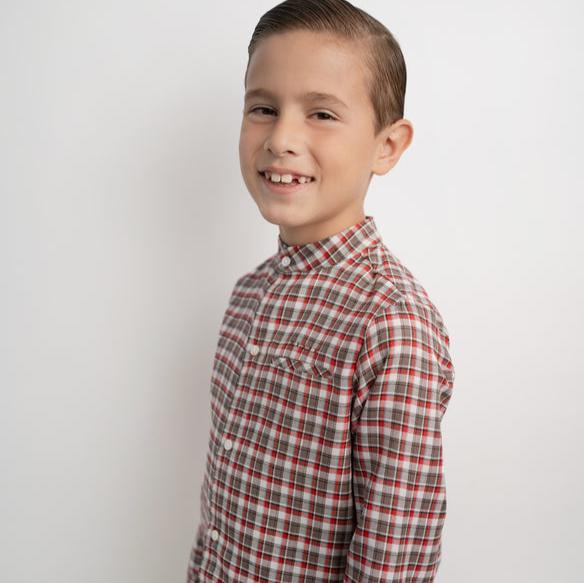 Camisa cuadros cafe, rojo y blanco coleccion nochebuena