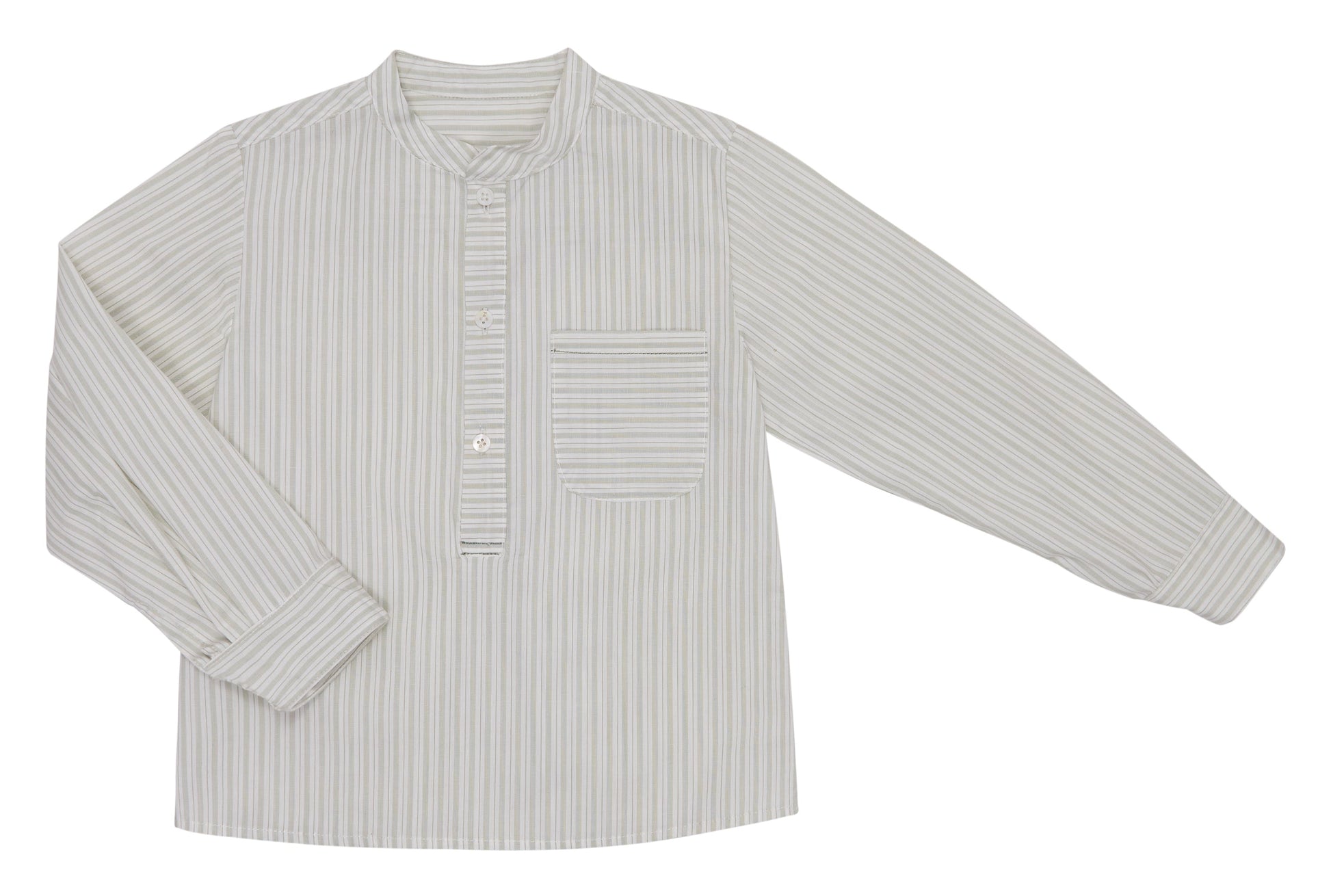 Camisa cuello mao en algodón de rayas verdes.