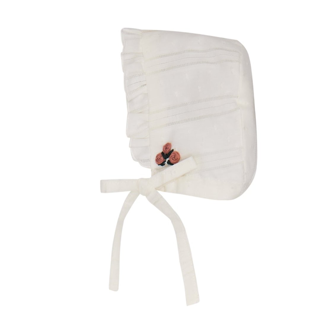 Capota blanca en tela calada con detalle de flor bordada a mano
