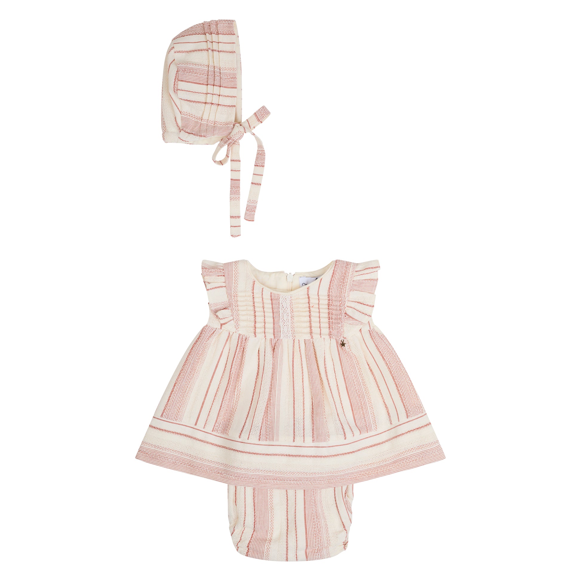 Capota con alforzas en estampado de rayas color hueso y chedrón