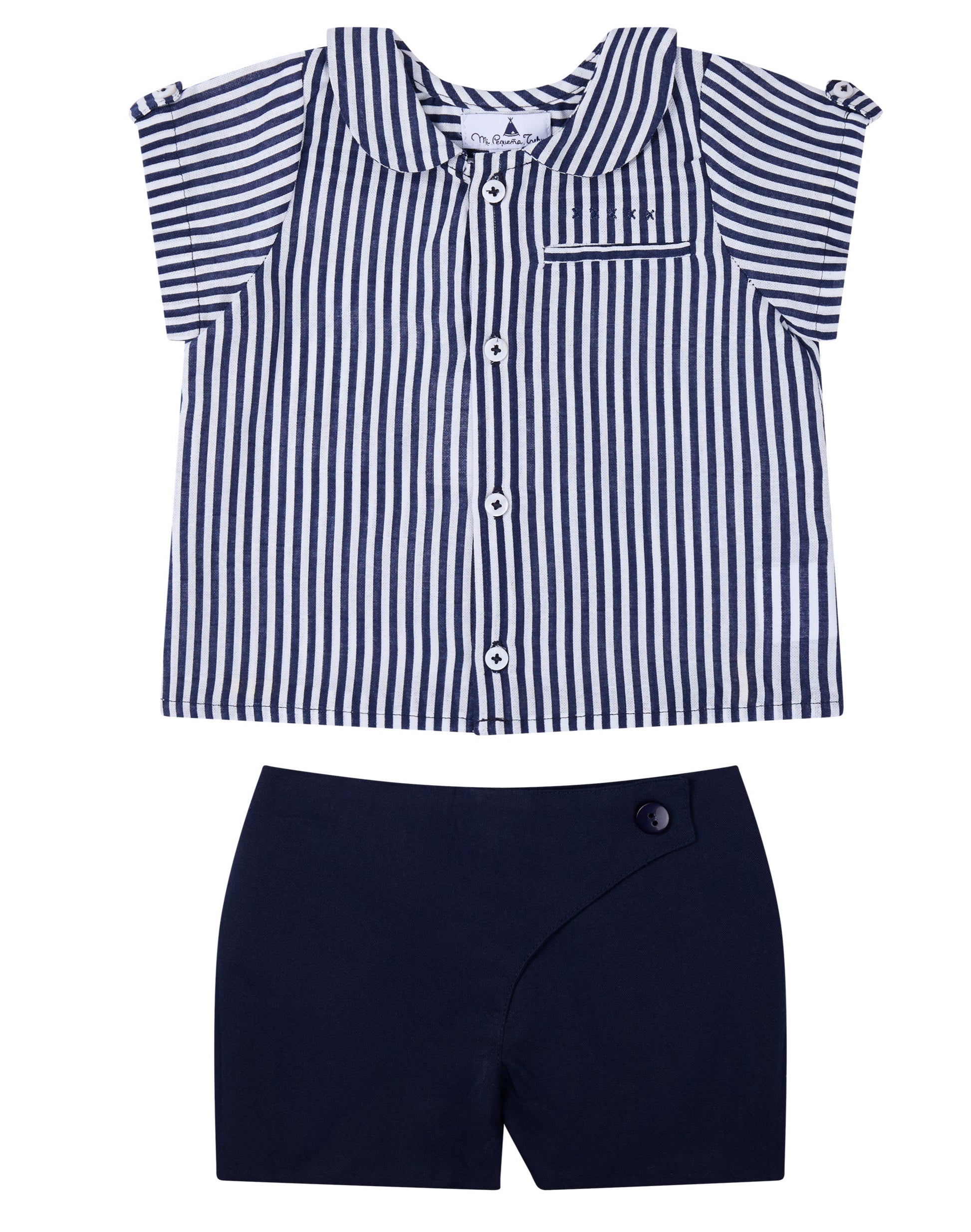 CONJUNTO CAMISA RAYA SHORT MARINO