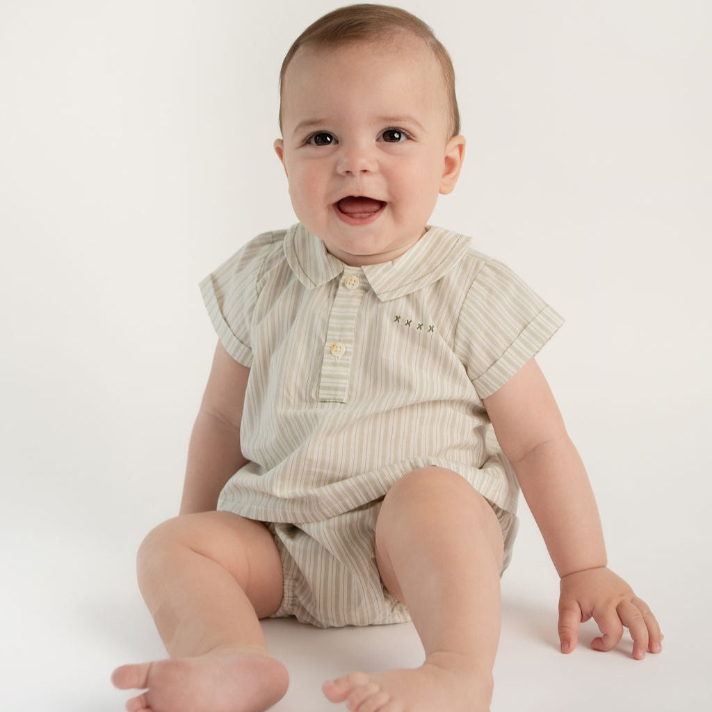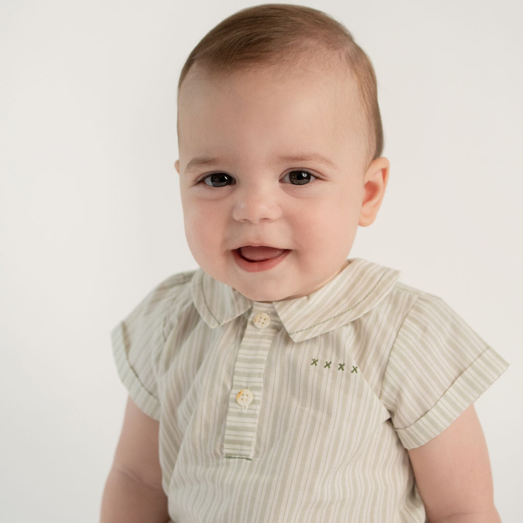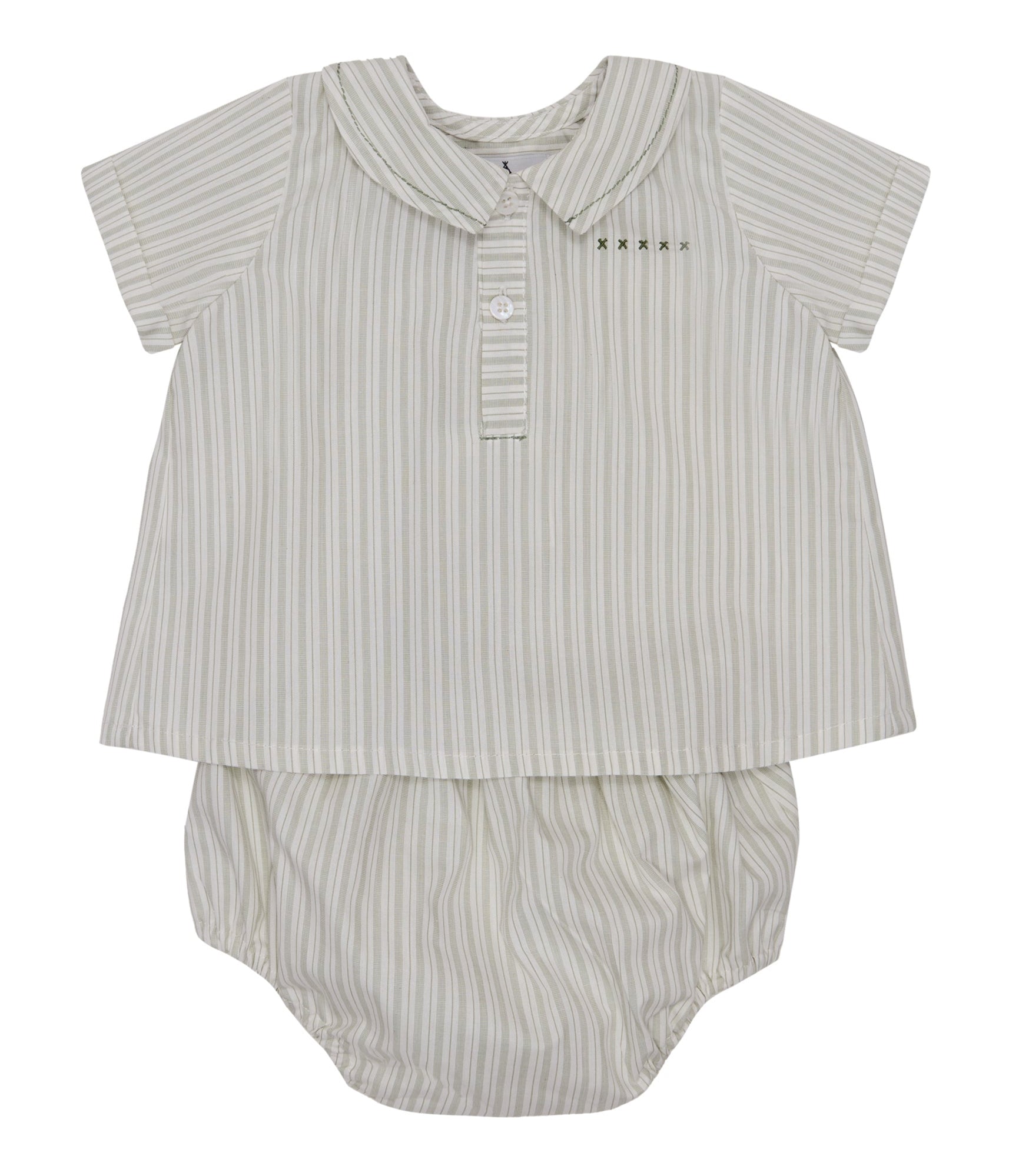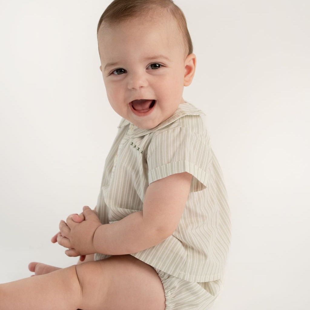 Conjunto de camisa y calzon en algodón de rayas verdes