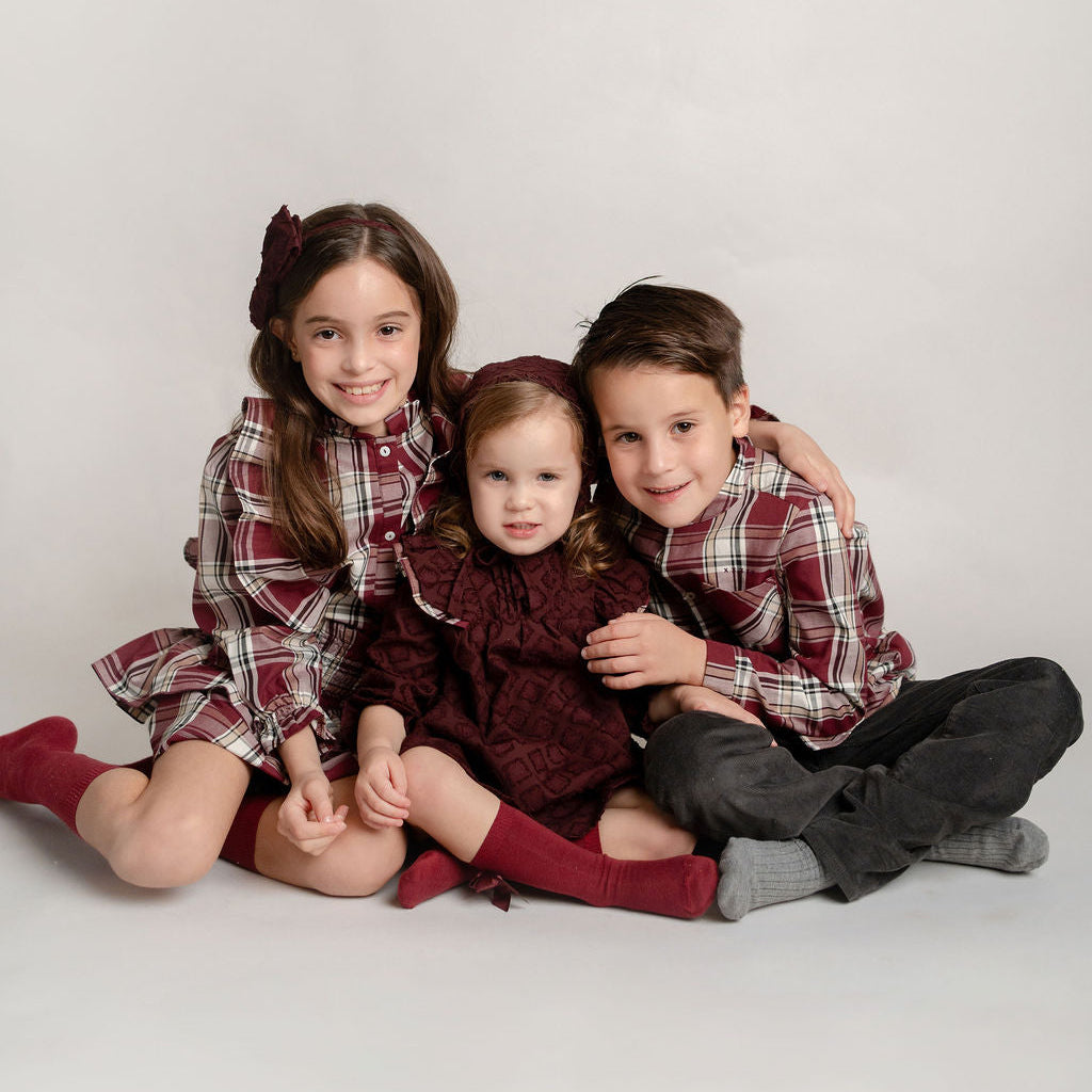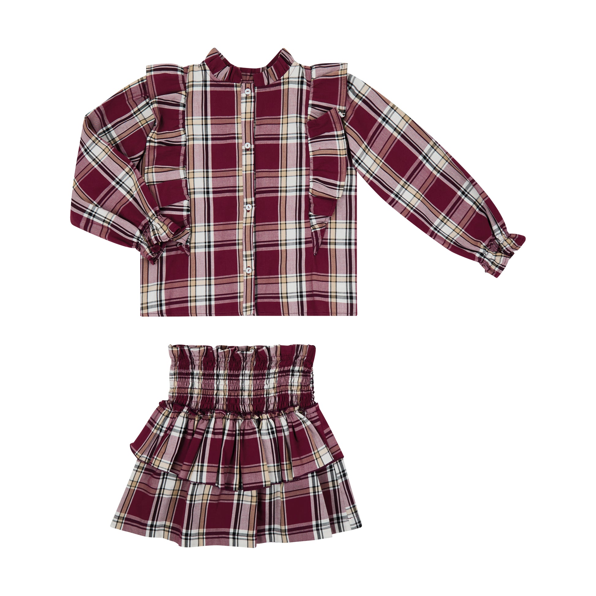 CONJUNTO FALDA Y BLUSA CUADRO ESCOSES VINO