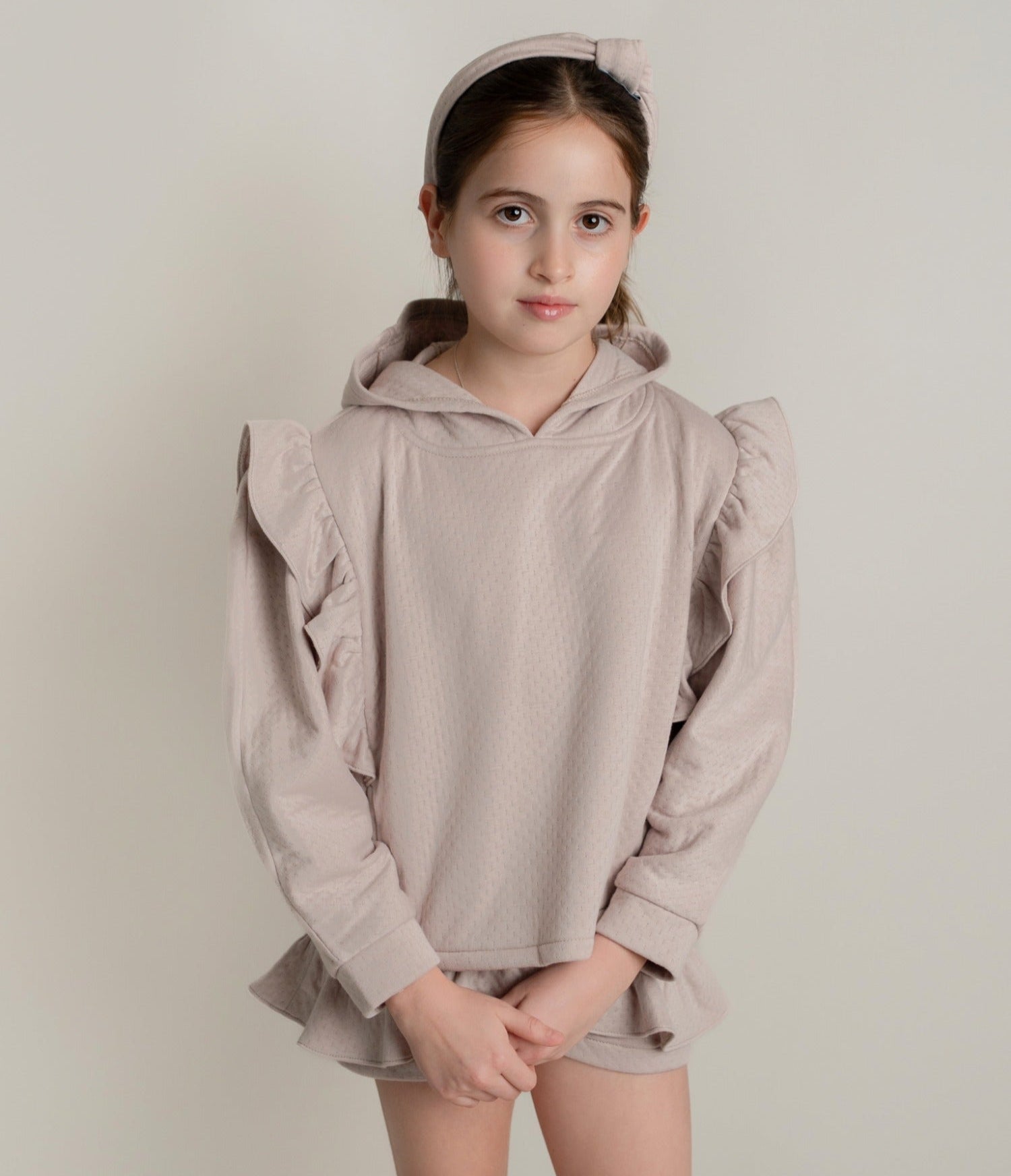 Sudadera algodon jackard rosa con bordado de estrellas y short olanes