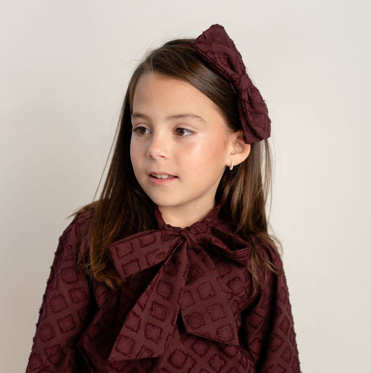 Diadema moño tela brocada color vino