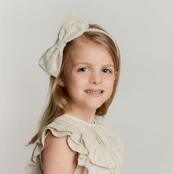 Diadema con moño en color arena.