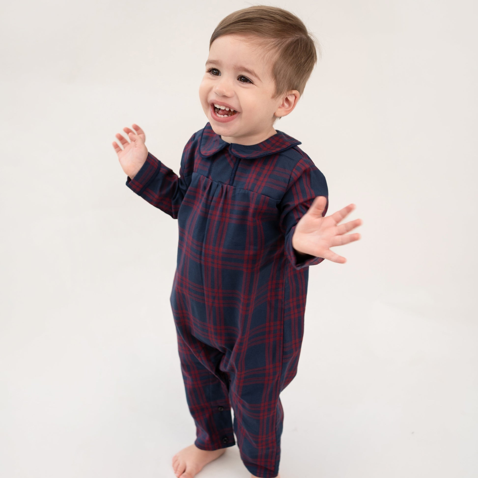 PIJAMA BEBE NIÑO CUADROS AZUL MARINO ROJO