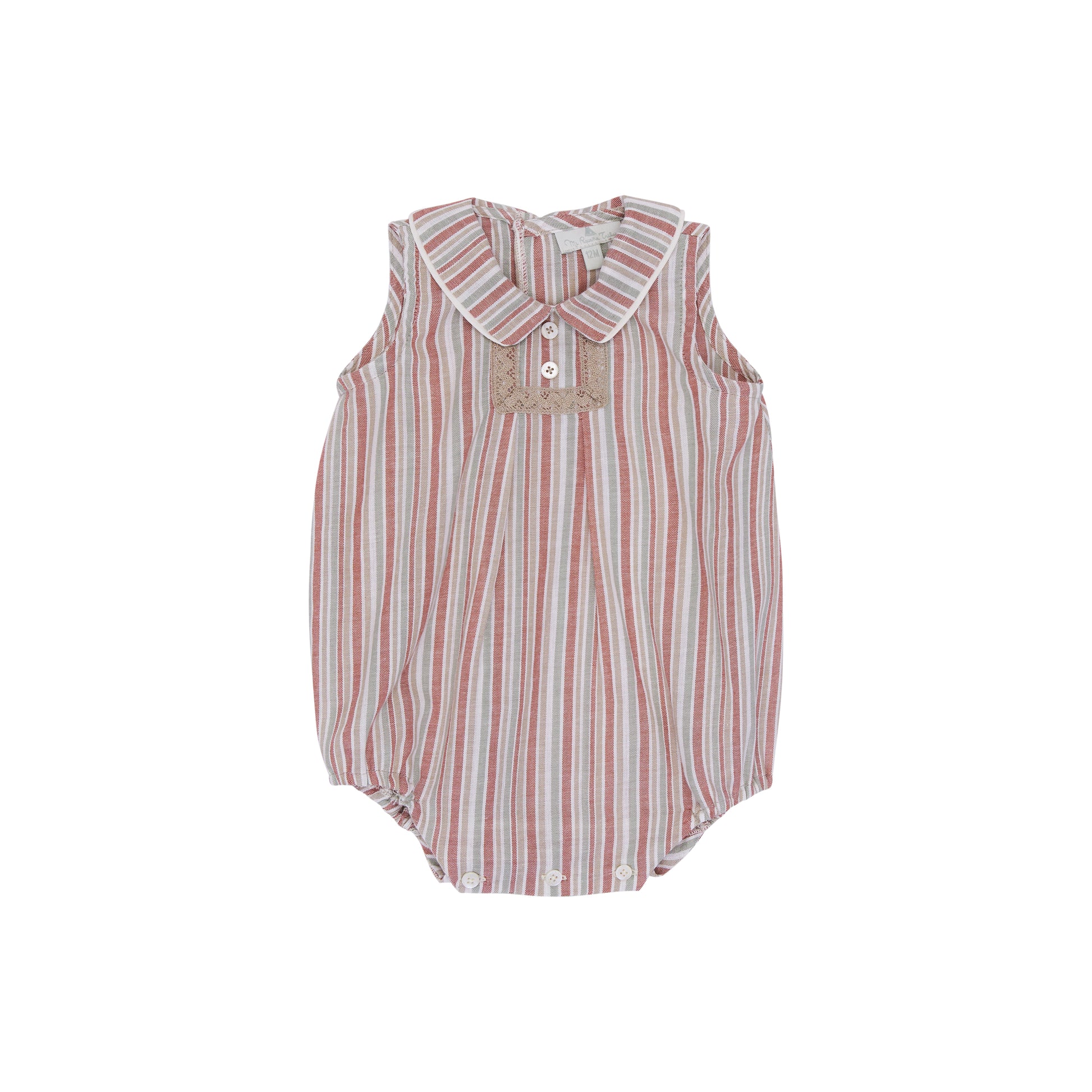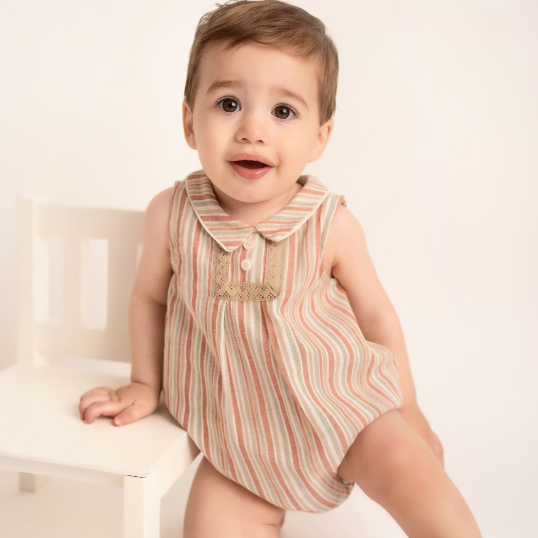 Ranita lino, niño estampado de rayas con tira bordada en pecho